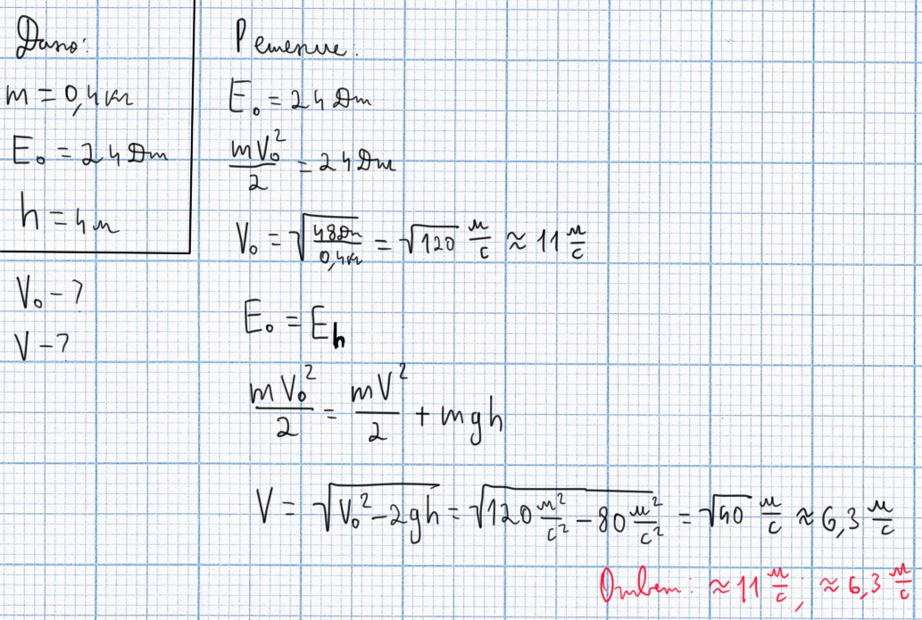 найдите V0 и V.(сопротивление воздуха не учитывайте)