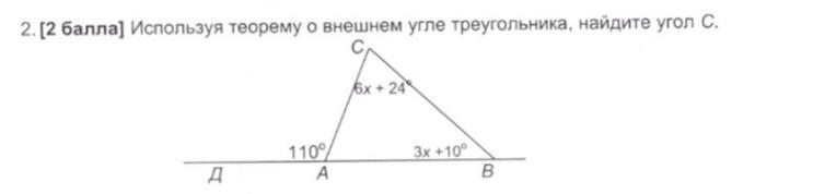 Ответ:48°Объяснение:Внешний угол треугольника равен сумме двум несмежным к нему углам.То есть, 110° = (6x+24°)+(13x+10°).(6x+24°)+(13x+10°)=110°19x+34°=110°19x=…