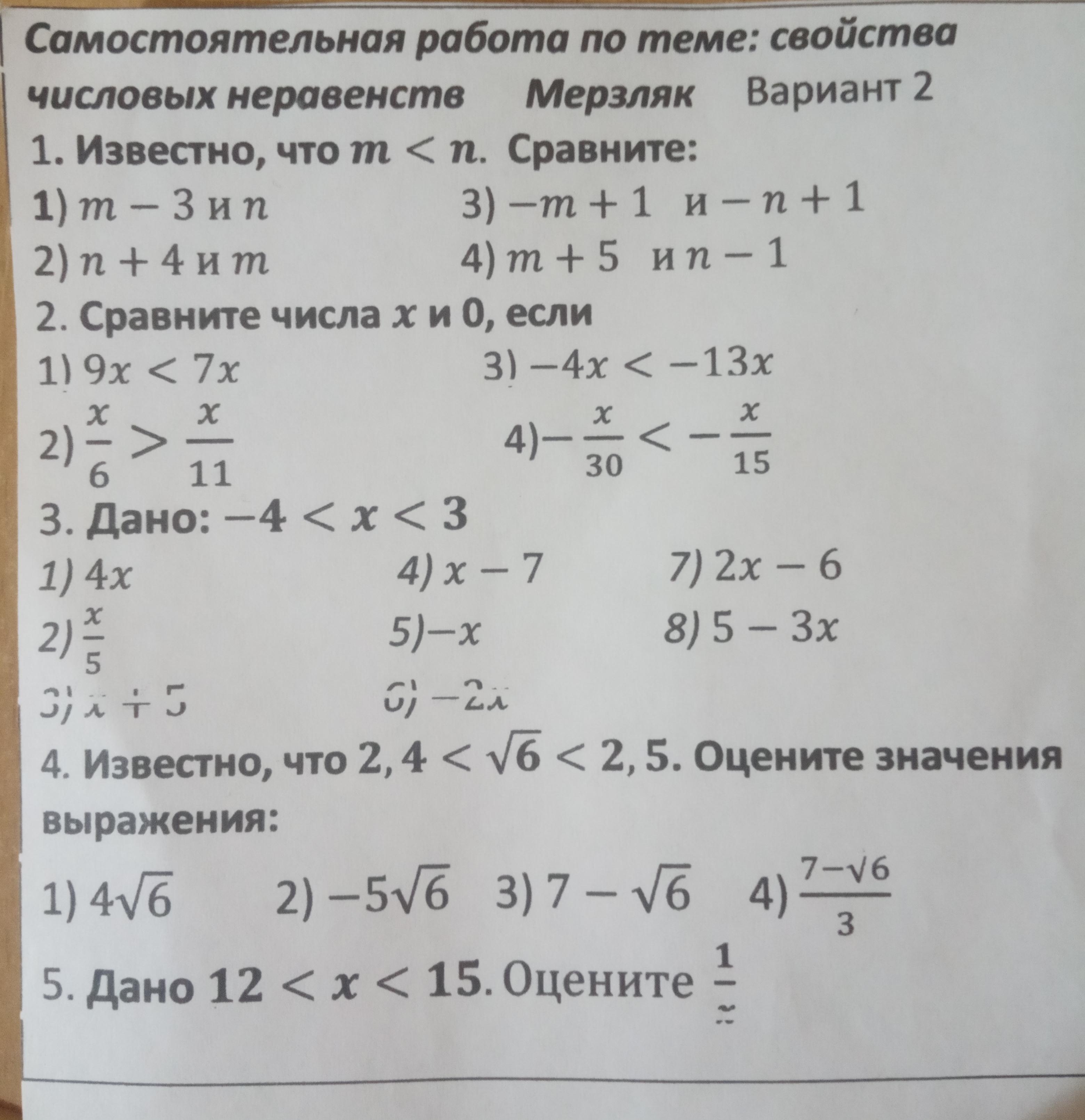 СРОЧНО!! Помогите решить самостоятельную работу за восьмой класс, дам 30 баллов! Заранее спасибо