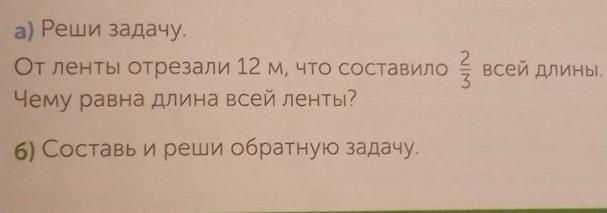 б) Длина всей ленты равна 18 м, отрезали 2/3 всей ленты. Сколько метров отрезали?