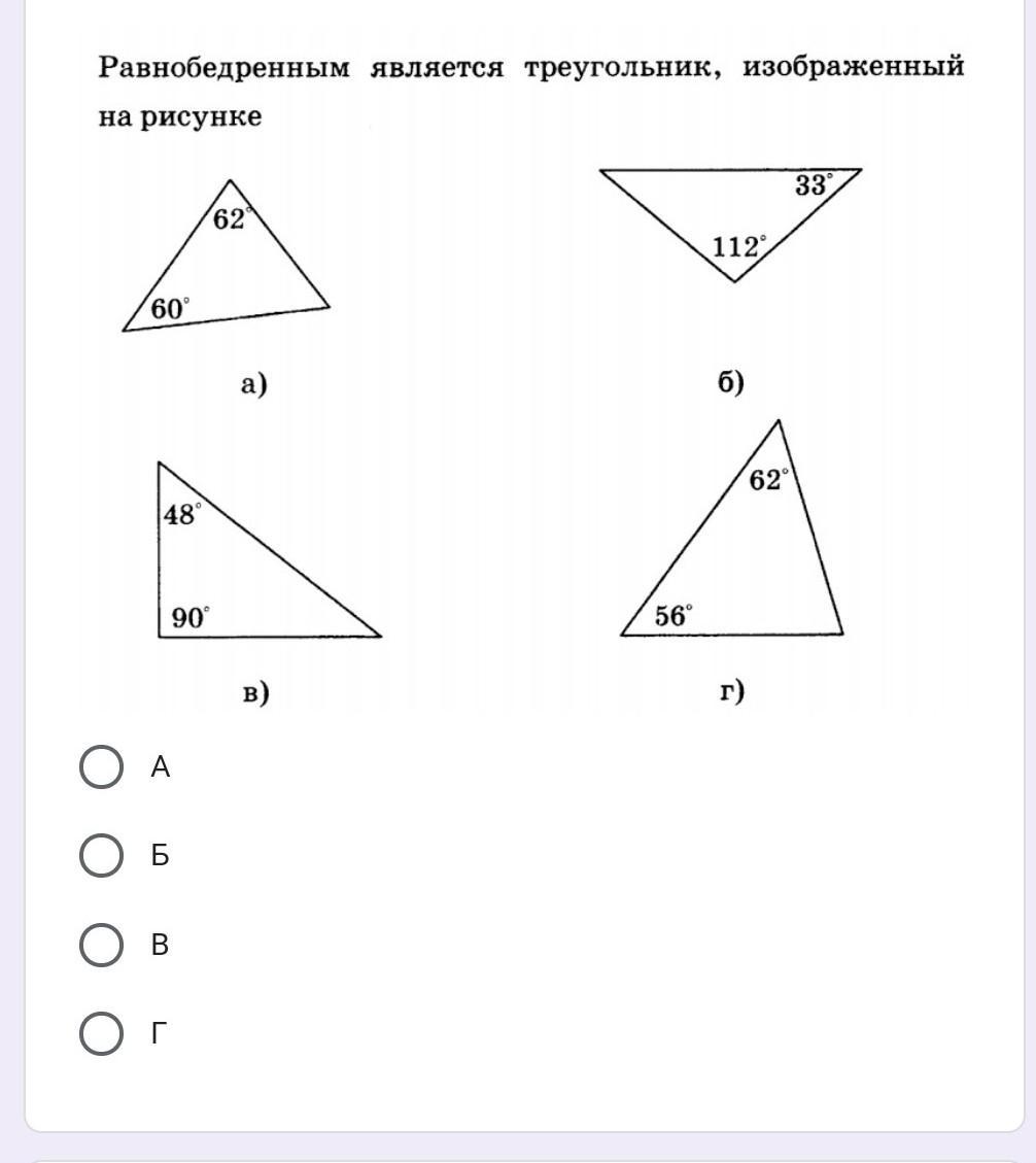 так как 3 угол равен 180-52-62= 62 градусов => 2 угла равны следовательно треугольник равнобедренный