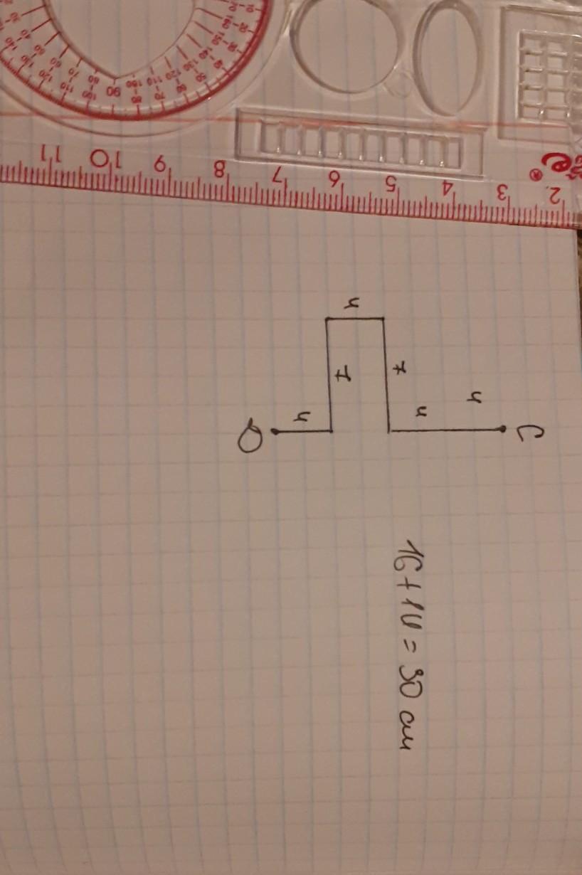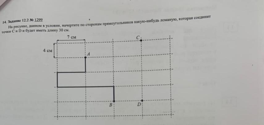 вот 14+16=30см с точки С спускаемый две клетки вниз и поворачиваем в левую сторону 1 клетку после 1 клетка вниз и 1 клетка на право а после вниз к точке Д