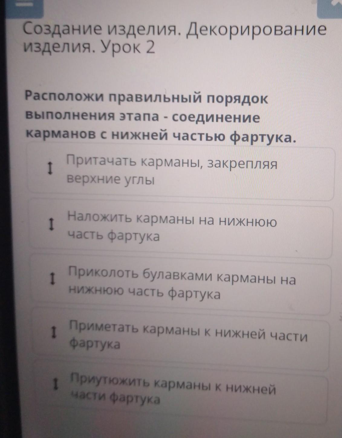 создание и стилистика регулирование изделий урок 2 расположи правильный порядок выполнения этого соединение карманов с нижней частью фартука