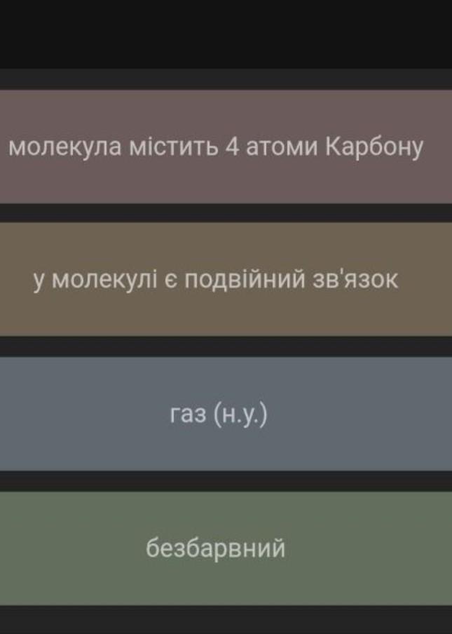 Молекула містить 4 атоми Карбону - ця властивість НЕ характерна для етену