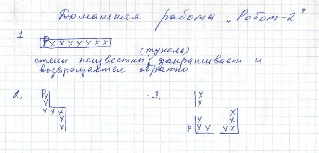 Между соседними (по сторонам) клетками может стоять стена, через которую Робот пройти не может. На практике поле всегда ограниченного размера, а стенки стоят в заданных местах в зависимости от задачи. Задача состоит в закрашивании определенных клеток и остановке робота в заданном месте.