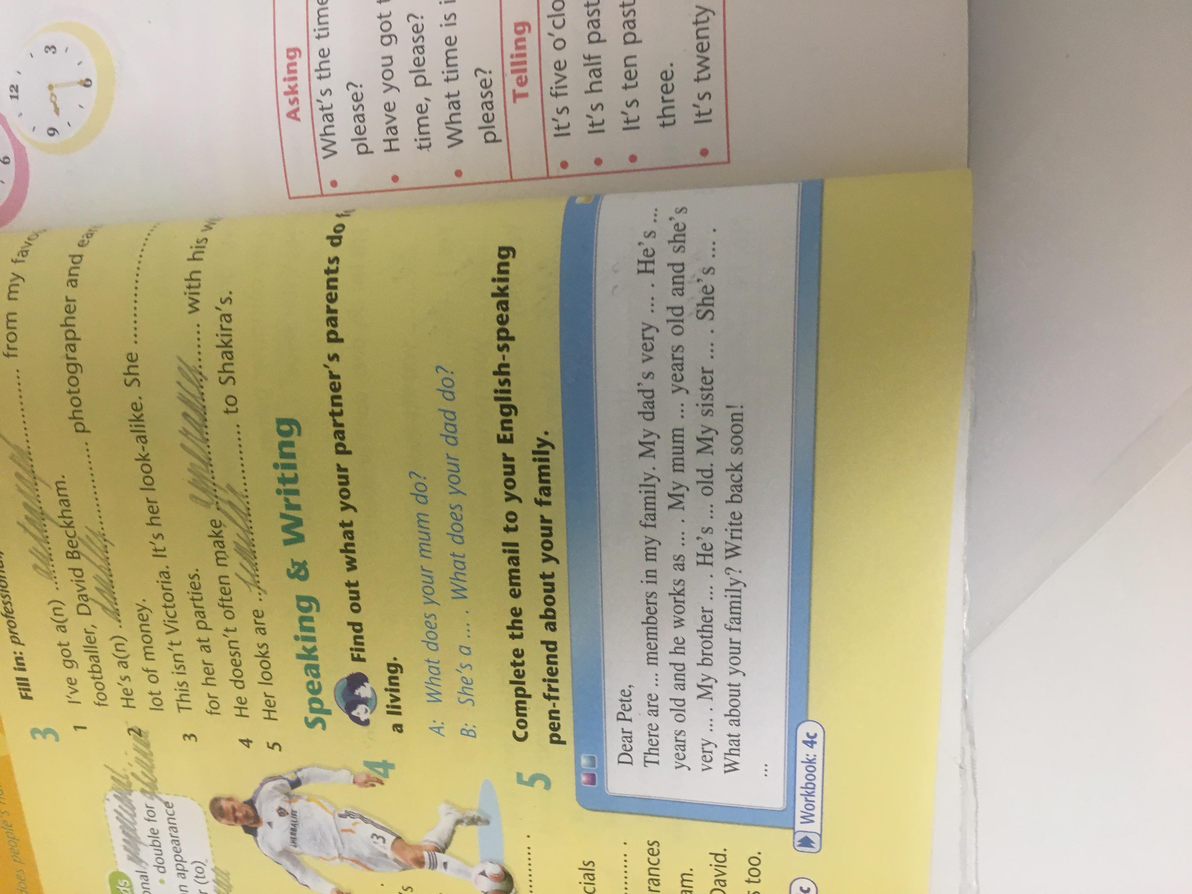 There are many members in my family. My dad's very busy. He's 34 years old and he works as a pilot. My mum's 32 years old and she's very friendly. My brother Dan. He is 17 years old. My sister Susan. She's 15 years old. What about your family? Write back soon!