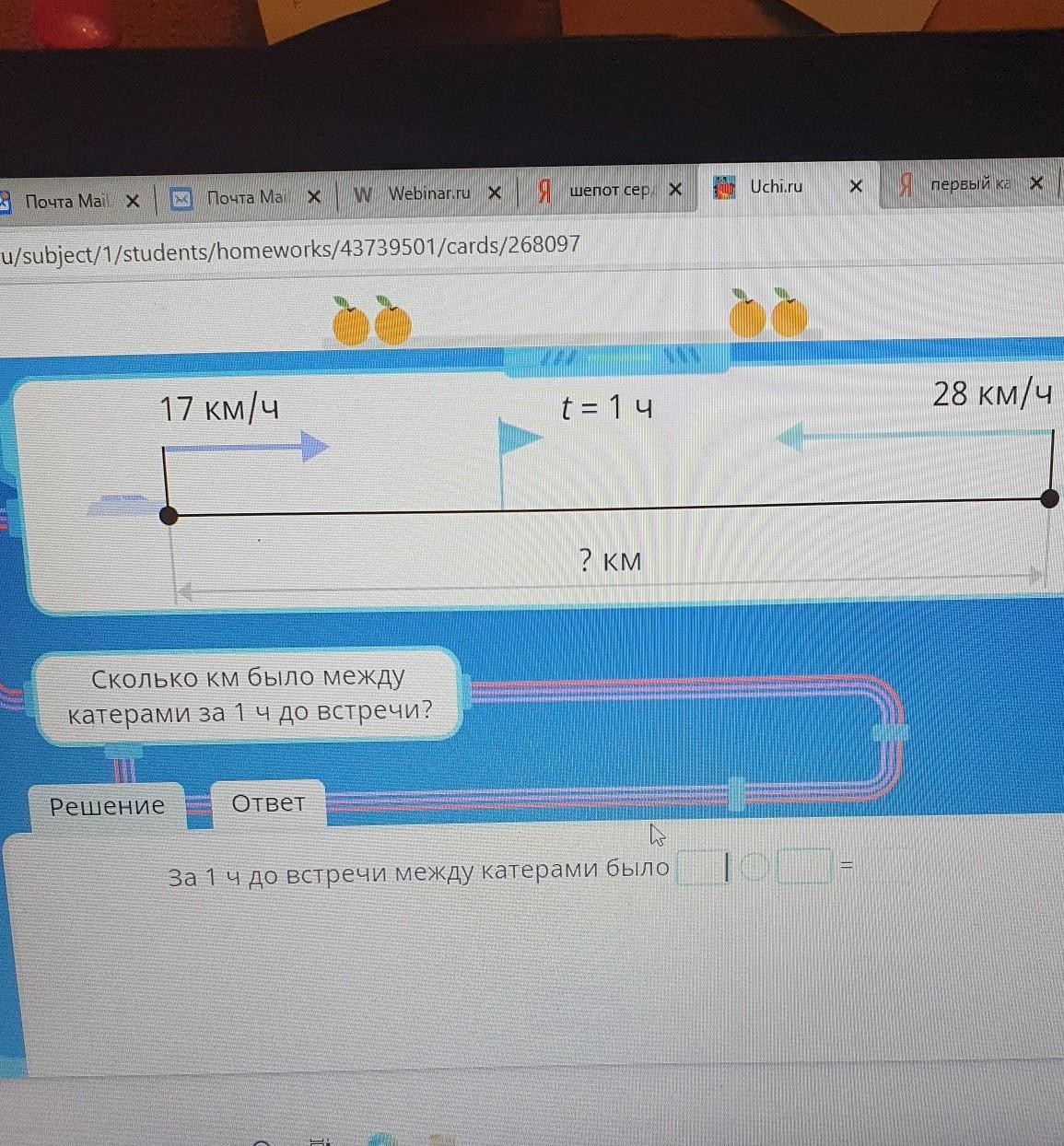 1) 17 + 28 = 45 (км/ч) - Скорость сближения