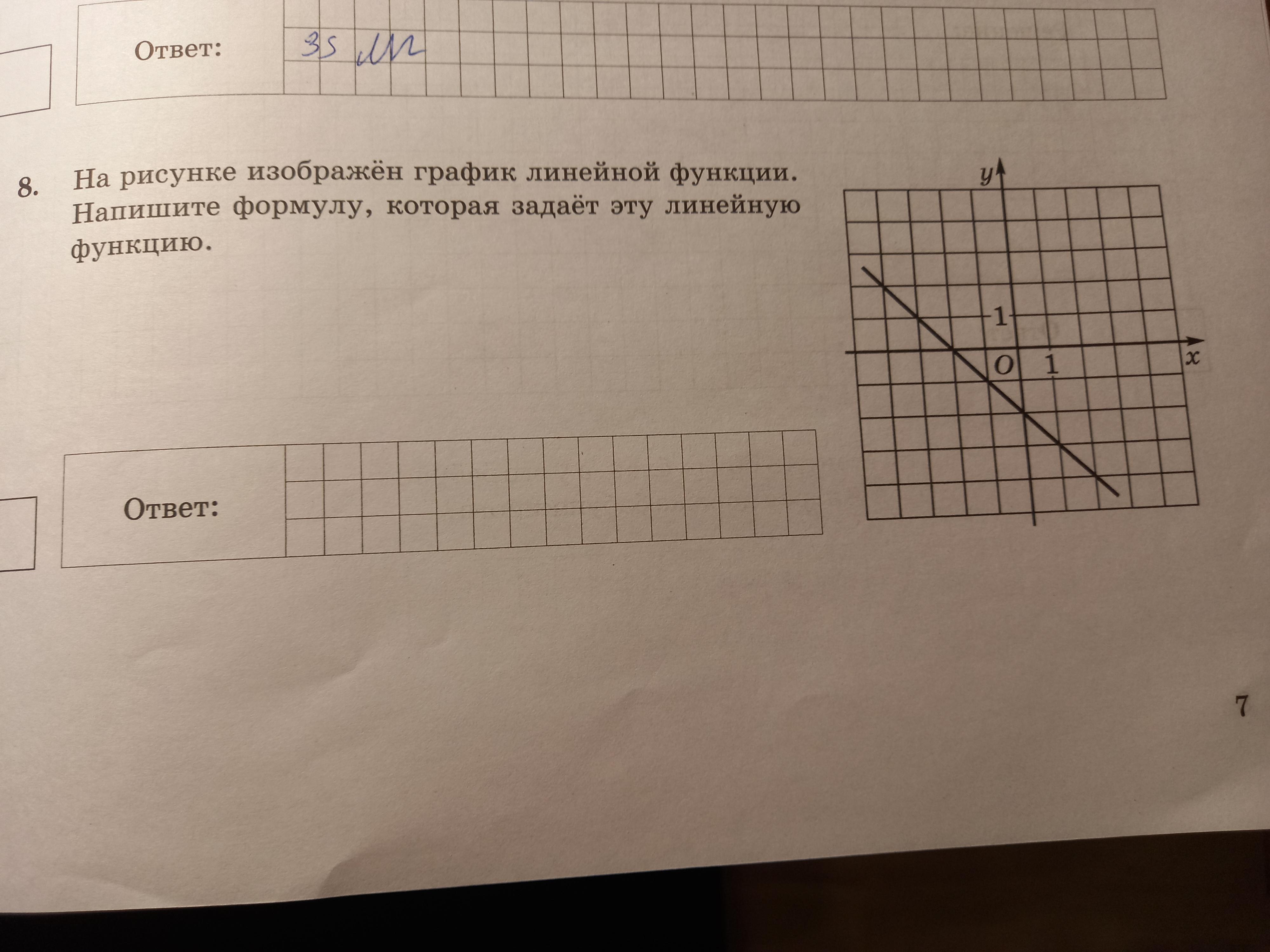 8.На рисунке изображен график линейной функции.Напишите формулу,которая задает эту линейную функцию.