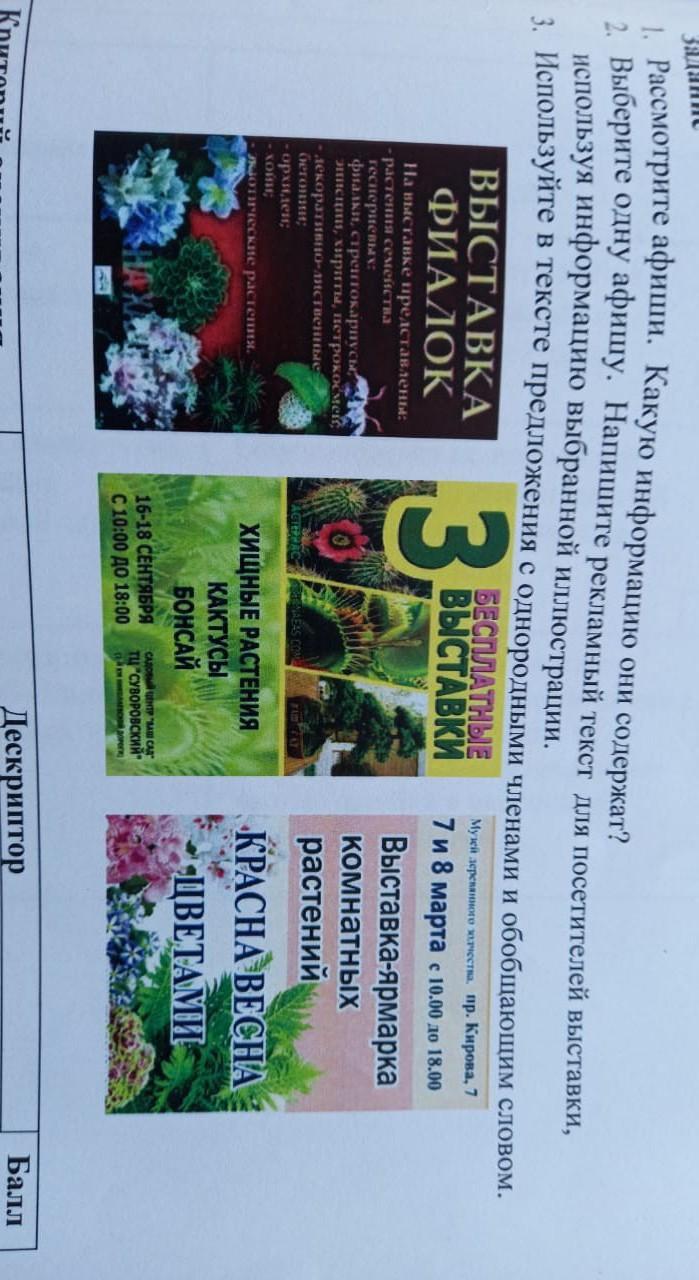 Смотри, первая афиша это просто фиалки вторая хищные и необычные растения а третья домашние растения, реклама это когда будет выставка, что в ней интересного, о чем она в какое время и где, надеюсь что помогла)