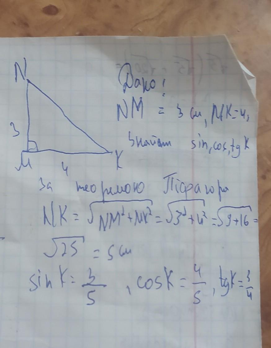 cos ∠ К = MK/NK = 4/5