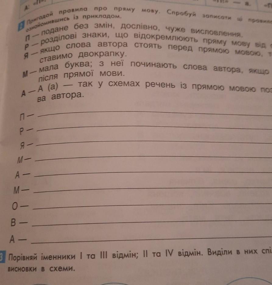 Ответ:Якщо слова автора стоять перед прямою мовою, то після них ставиться двокрапка, а якщо в середині або після неї, то виділяються комою й тире і пишуться з малої букви.