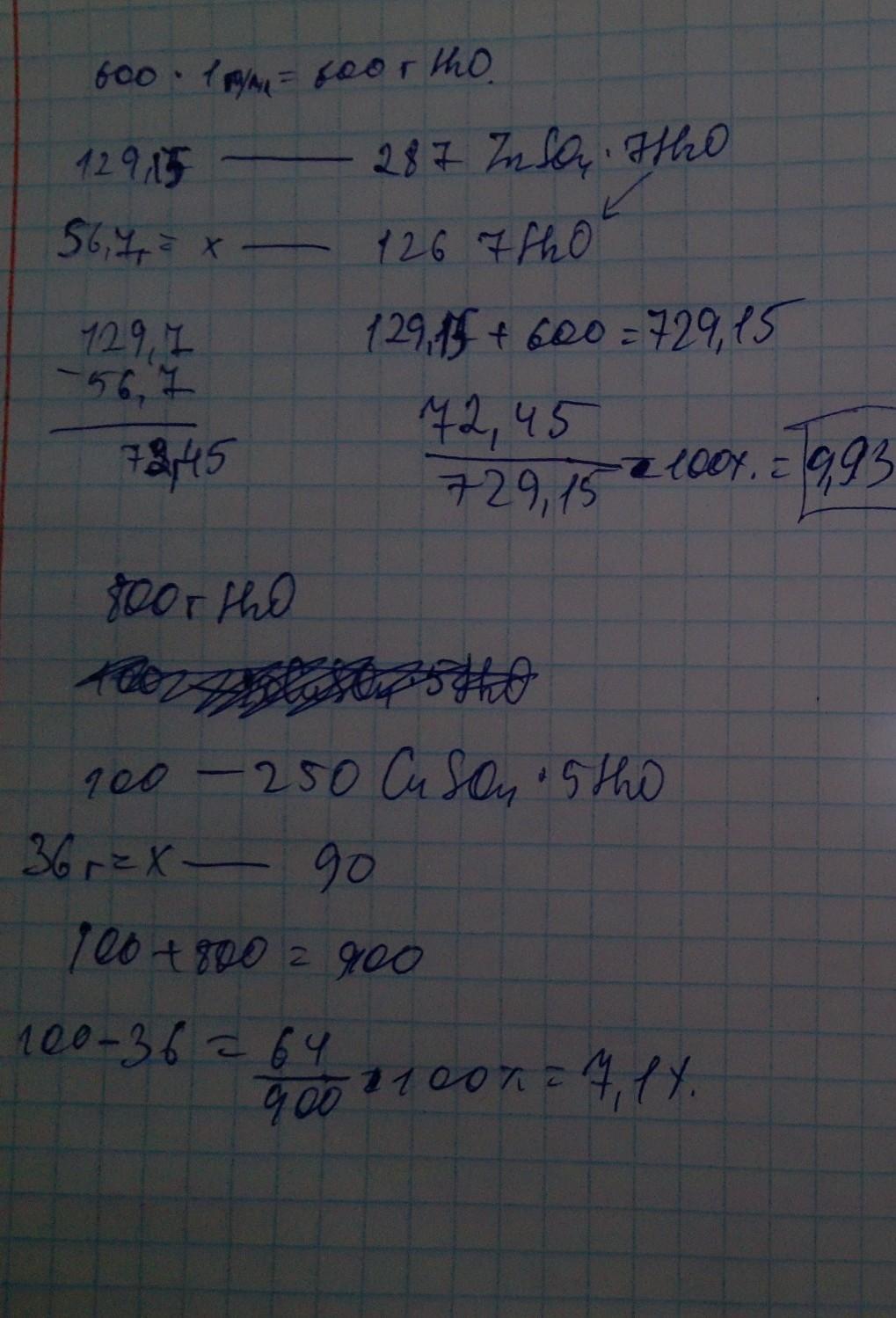 1) В 600 мл воды растворили 129,15 грамм ZnSO4* 7H2O. Найдите массовую долю
