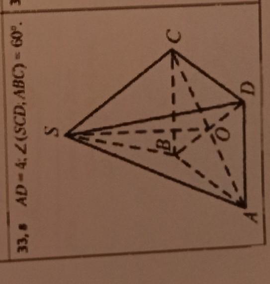 На рисунке изображена правильная пирамида. Найдите площадь полной поверхности пирамиды. AD=4,угол(SCD,ABC)=60