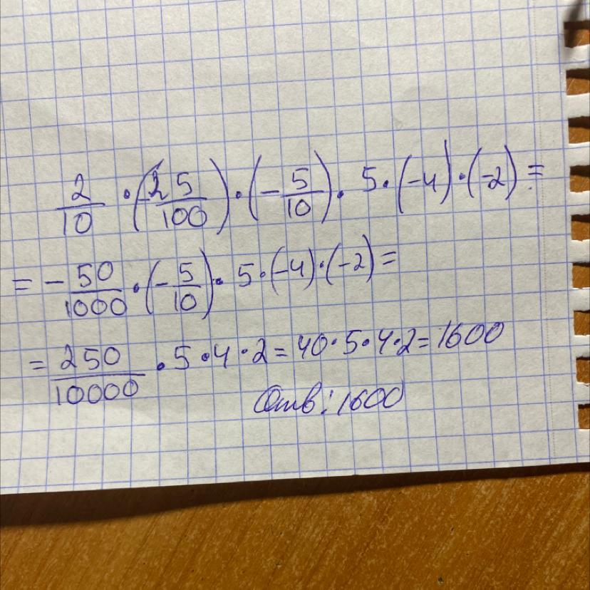 0,2•(-0,25)•(-0,5)•5•(-4)•(-2) = 1