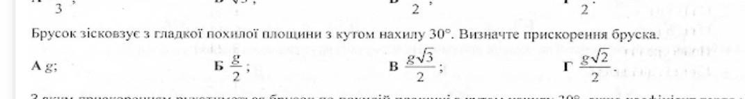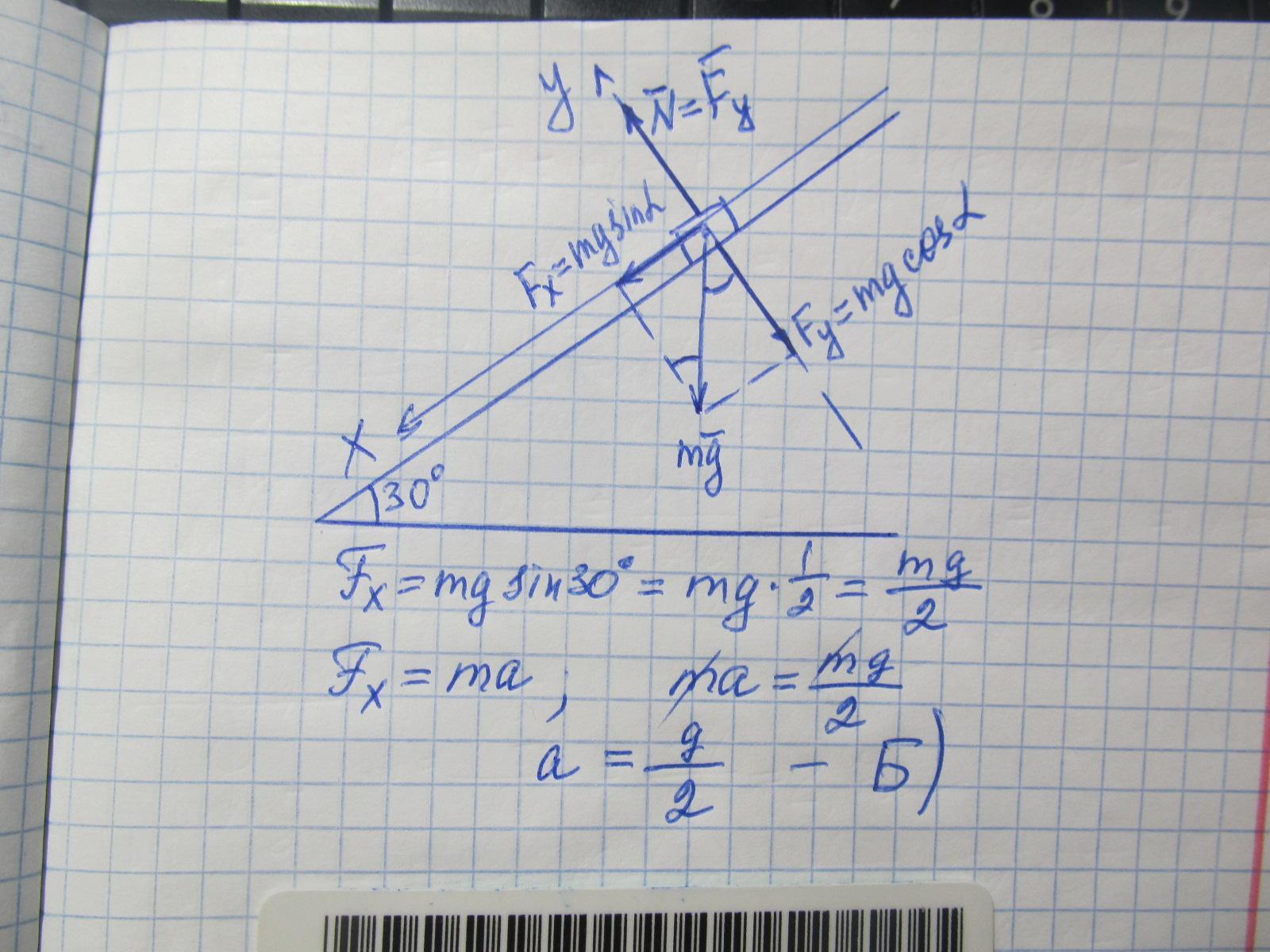 !!!100 балів!!!Брусок зісковзує з гладкої похилої площини з кутом нахилу 30°. Визначте прискорення бруска