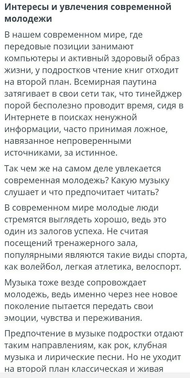 "В современном мире где книги отошли на второй план, на из замену пришли музыка, гаджэты, стиль и многое другое."