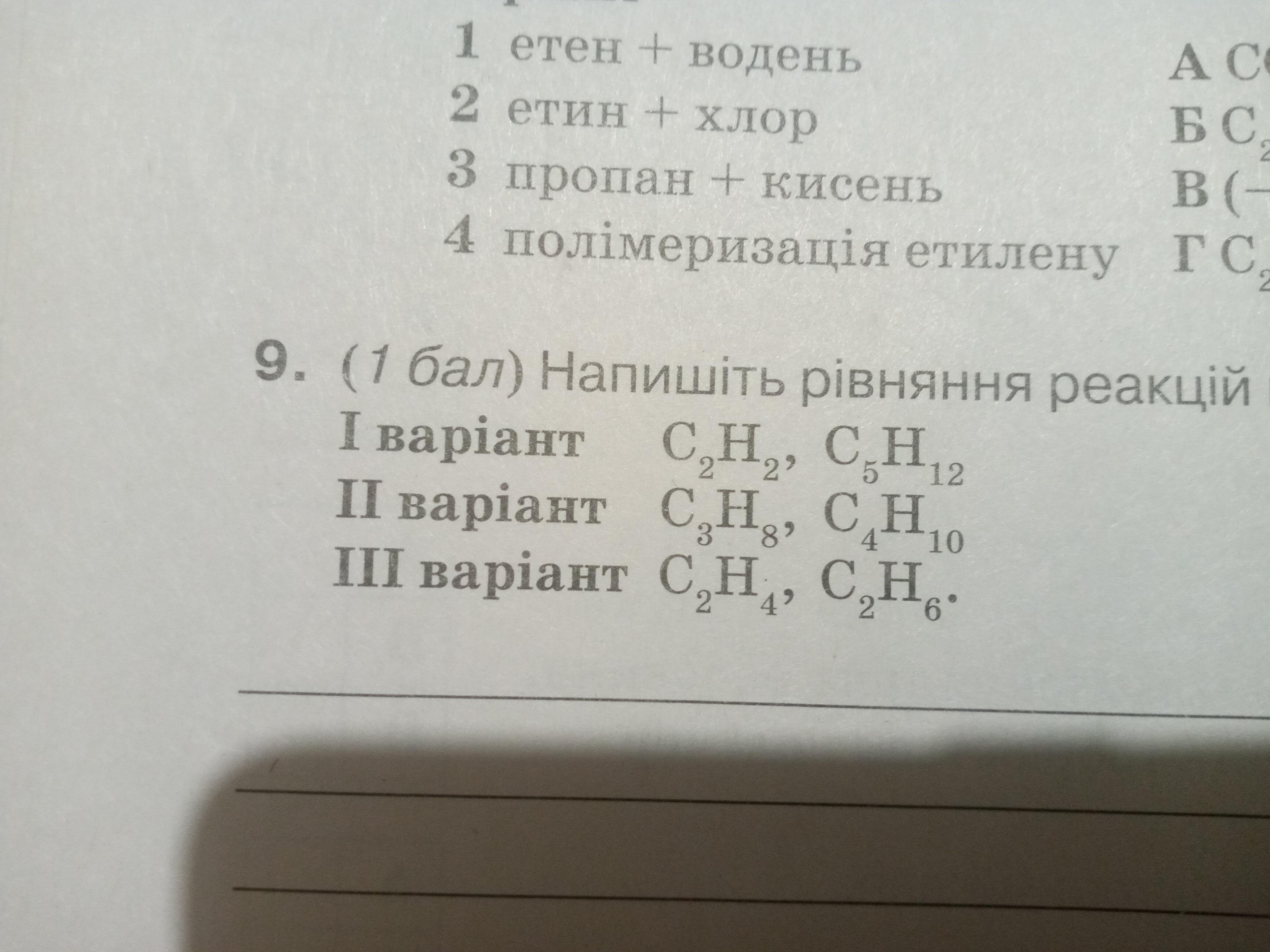 Напишіть рівняння реакції повного згоряння вуглеводнів C2H4, C2H6 3 вариант