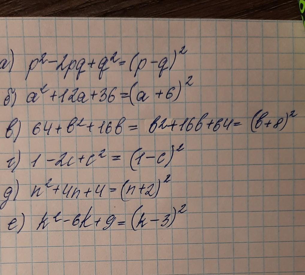 г) 1 - 2c +c²= 1²-2c+c²= (1-c)².