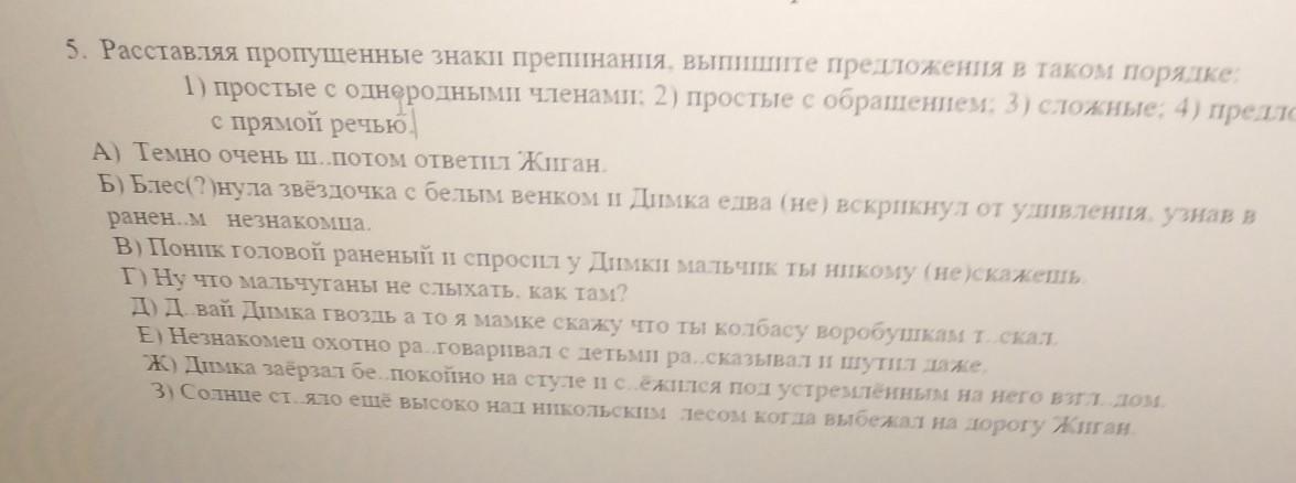 5. Расставляя пропущенные знаки препинания, выпишите предложения в таком порядке: