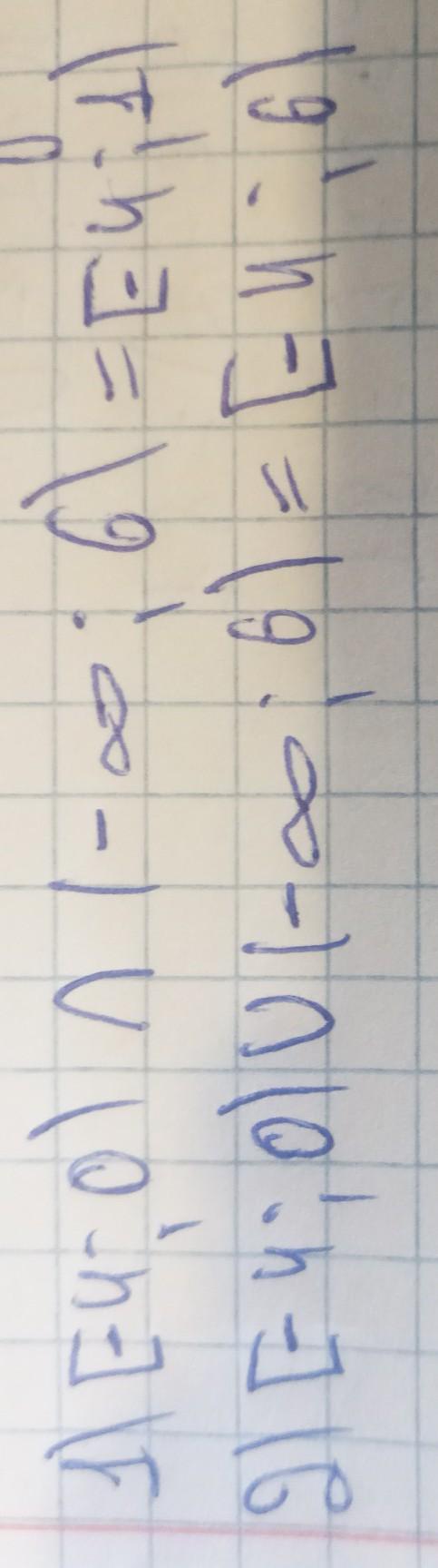 Изобразите на координатной прямой и запишите пересечение и объединение числовых промежутков [-4;1) и (1:-~)