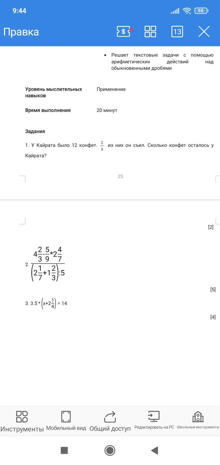 Какой знак стоит в числителе между 4 2/5 и 5/9 плохо видно