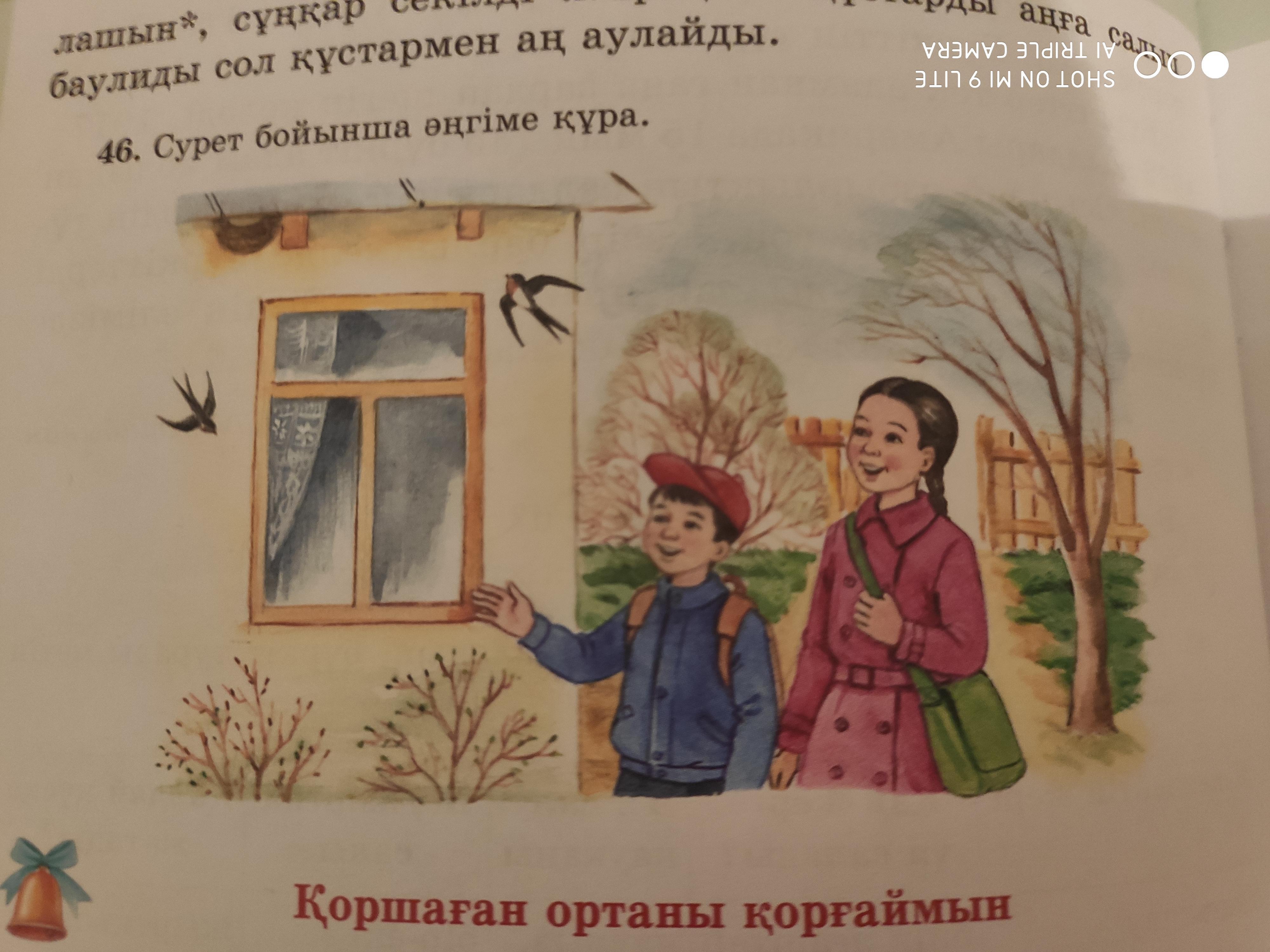 Мен тәтеммен бірге мектептен үйге келе жатыр едім құстар әдемі болып үйдін қасында ұшып жүр екен.