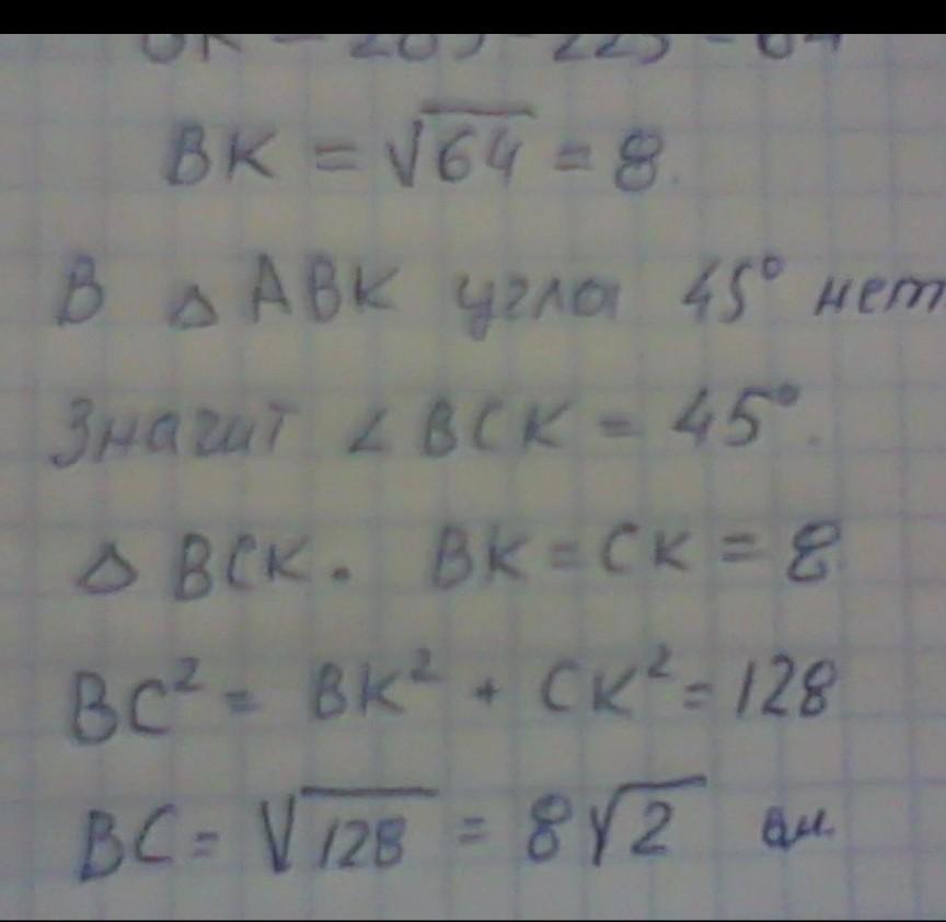из точки вне прямой проведены две наклонные одна из наклонных имеет длину 10 см и оброзует своей проекцией на прямой угол 30° найдите длину второй наклонной если она образует с прямой угол 45°