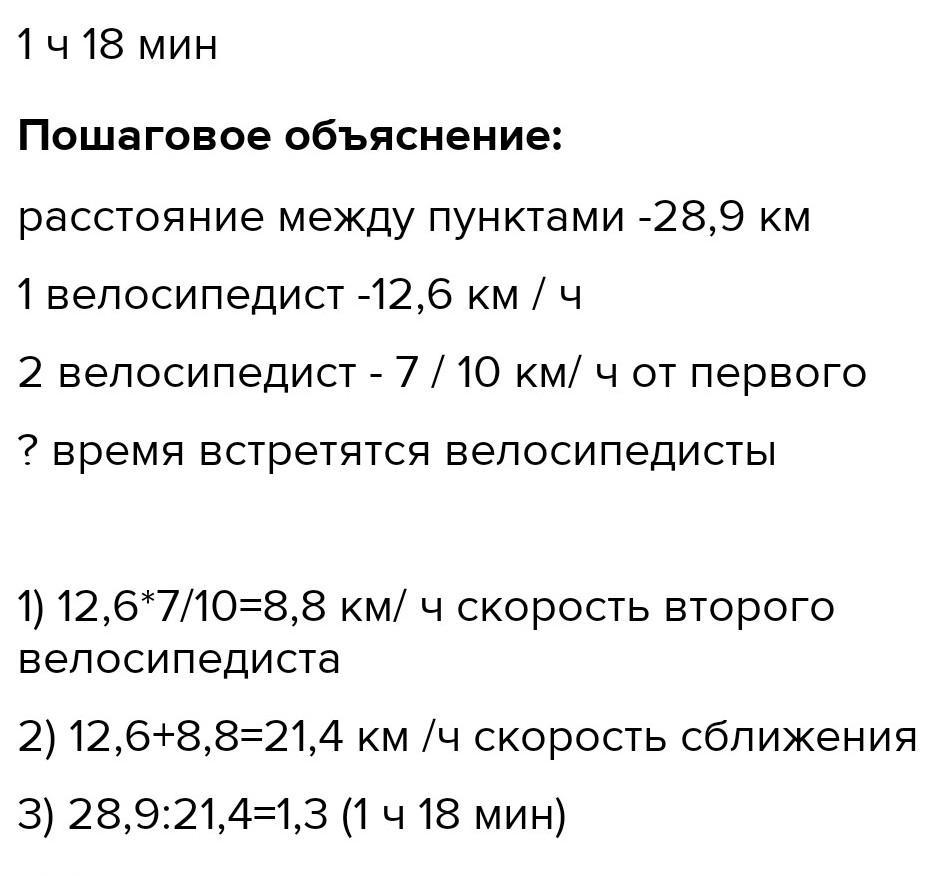 1) 13,6:10×7=9,52 км/ч скорость 2 велосипедиста