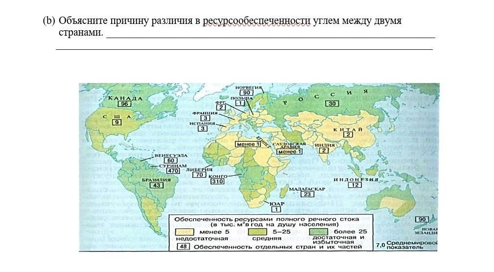Объясните причину различия в ресурсообеспеченности углём между двумя странами. Помогите пожалуйста Срочно.