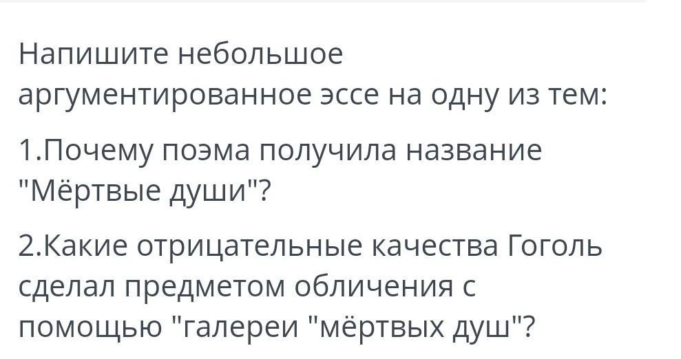 Название данного произведения Гоголя, в первую очередь связано с главным героем Чичиковым, который скупал мёртвых крестьян. Для того чтобы начать заниматься собственным делом. Но на самом деле он хотел эти мертвые души продать и обогатиться. Но не только в этом смысл названия данного произведения, автор хотел показать истинные души общества, что они давно очерствели и умерли. Это видно из того что каждый персонаж данного произведения ни имеет никакого духовного развития.