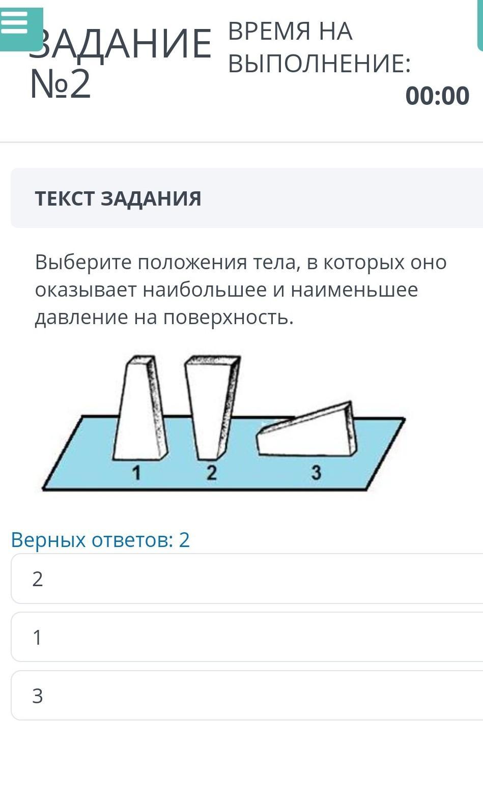 Выберите положение тела в которых оно оказывает найбольше и наименьше давление поверхность