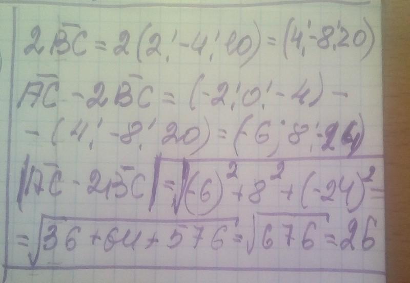Даны баллы A (3; -1; 0), B (-1; 3; -14), C (1; -1; -4). Найдите модуль вектора n = (AC) -2 ∙ (BC).