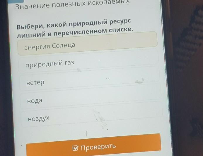 Выбери, какой природный ресурс