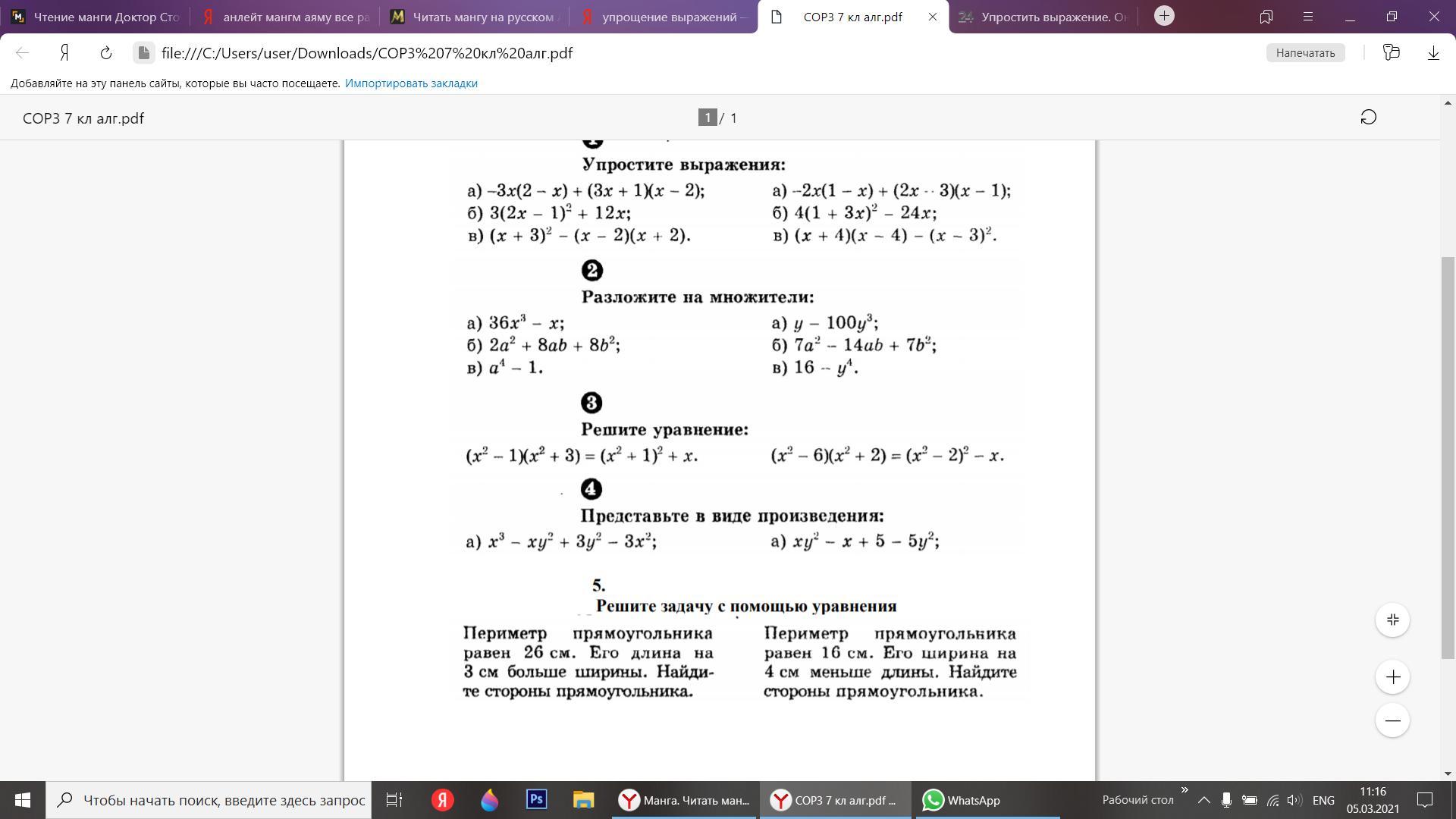 (В конце написано или 13 потому что не помню + 4 писать или -4,т.к. если перед скобками минус знаки меняются)