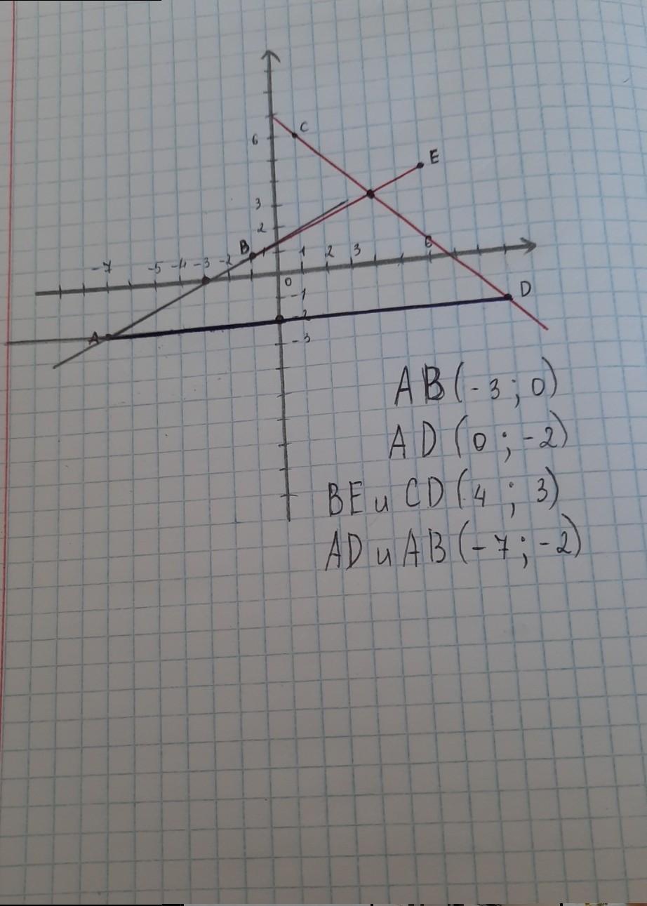 В координатной плоскости отметьте точки А(– 7; –2), В(–1; 1), С(1; 6), D(9; – 2), Е(6;4). Найдите:
