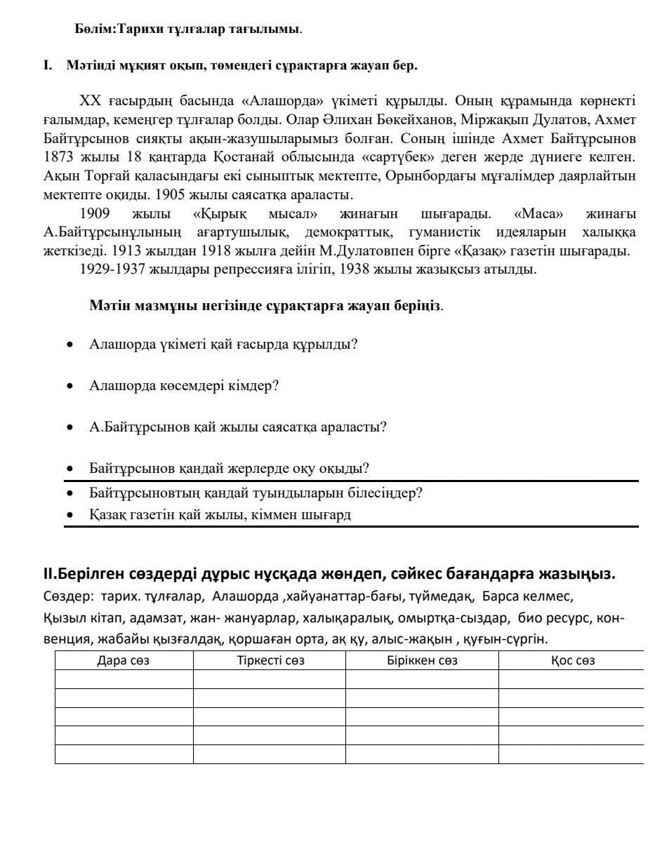2) Ә.Бөкейханов, А. Байтұрсынов, М. Дулатов.