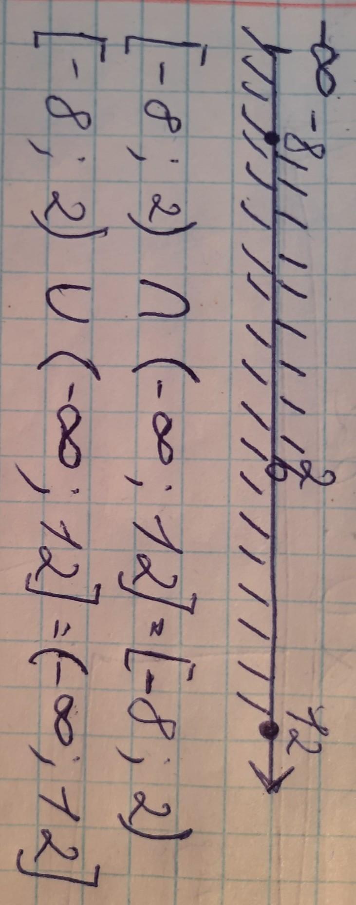 4. Изобразнте на координатной прямой и запишите пересечение и объединение числовых промежутков [-8:2) и (- бесконечность, 12]