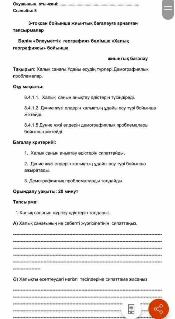 А)Санақ арқылы халықтың санын білуге болады.Халық санағына сол аумақтағы халықтың саны, құрылымын, әлеуметтік және экономикалық сипаты туралы ақпарат жиналады.