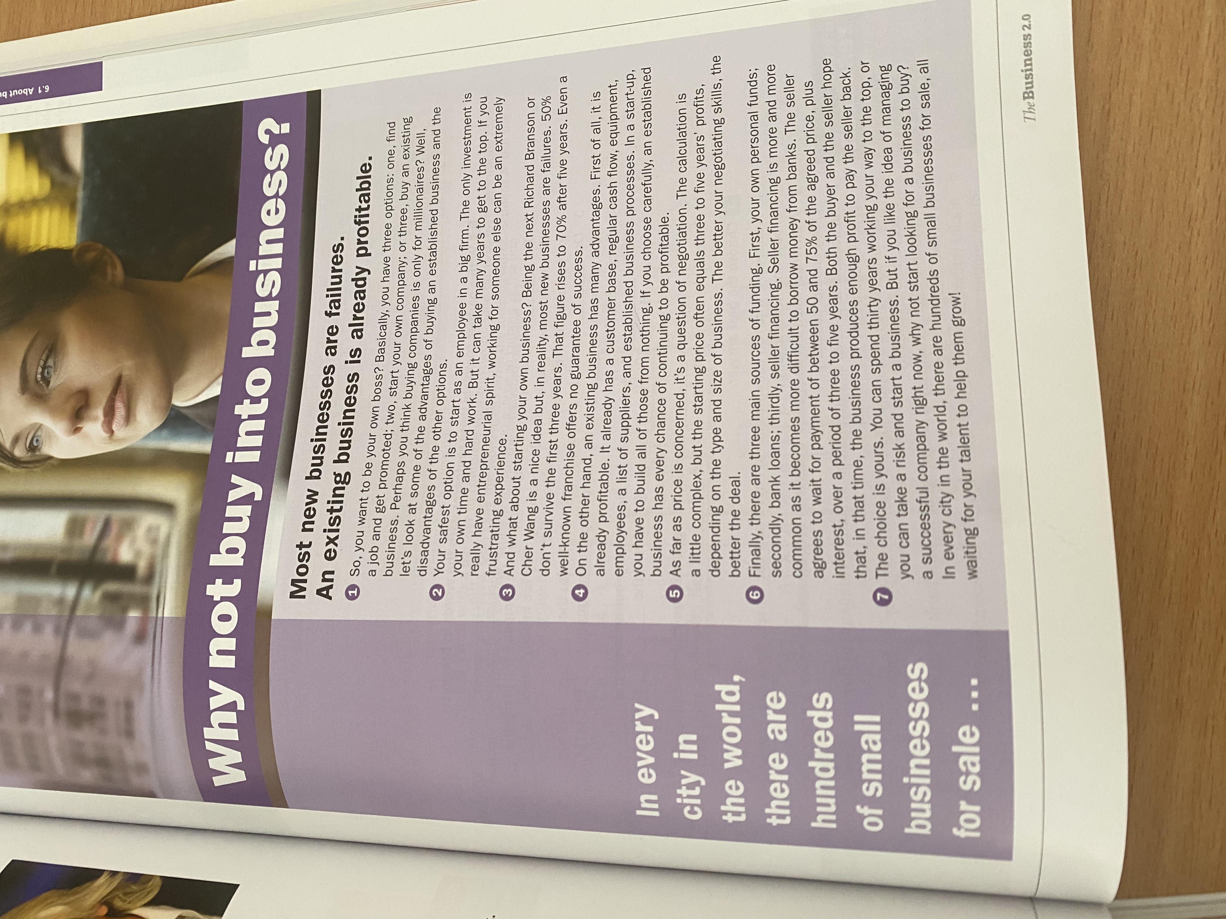 Бизнес и Ue Самый безопасный вариант - начать работать в большой фирме. У тех, у кого есть распродажа, есть опыт, связанный с разочарованием в предпринимательской деятельности. O А как насчет открытия собственного дела? К следующему Хитхарду Брэнсону не выжить в первые три года. Эта цифра возрастает до 70% ее пяти лет. Даже известная франшиза не предлагает гу O С другой стороны, существующий бизнес имеет много преимуществ. Во-первых, это уже прибыльно, у компании есть клиентская база, постоянный приток денежных средств, оборудование. сотрудников, список поставщиков и налаженные бизнес-процессы. в стартапе. вы должны построить все это из ничего. Если вы сделаете правильный выбор, у установленного бизнеса есть все шансы и дальше оставаться прибыльным. O Что касается prce, то это вопрос переговоров. Расчет производится в зависимости от типа и размера лучшей сделки. Наконец, есть три основных источника финансирования. Во-первых, личные средства: во-вторых, банковские кредиты; в-третьих. финансирование продавца. Финансирование Selier является более распространенным и более распространенным, поскольку становится все труднее брать деньги в долг у barka. Продавец соглашается дождаться выплаты от 50 до 75% согласованной цены, pkus процентов, в течение периода от трех до пяти лет. И покупатель, и продавец надеются, что за это время бизнес принесет достаточно прибыли, чтобы расплатиться с продавцом. O Выбор за вами. Вы можете потратить тридцать лет на то, чтобы достичь вершины, или вы можете рискнуть и начать бизнес. Но если вам нравится идея управления успешной компанией прямо сейчас, почему бы не начать искать бизнес для покупки? В каждом городе мира на продажу выставлены сотни малых предприятий, и все они ждут, когда ваш талант поможет им развиваться!