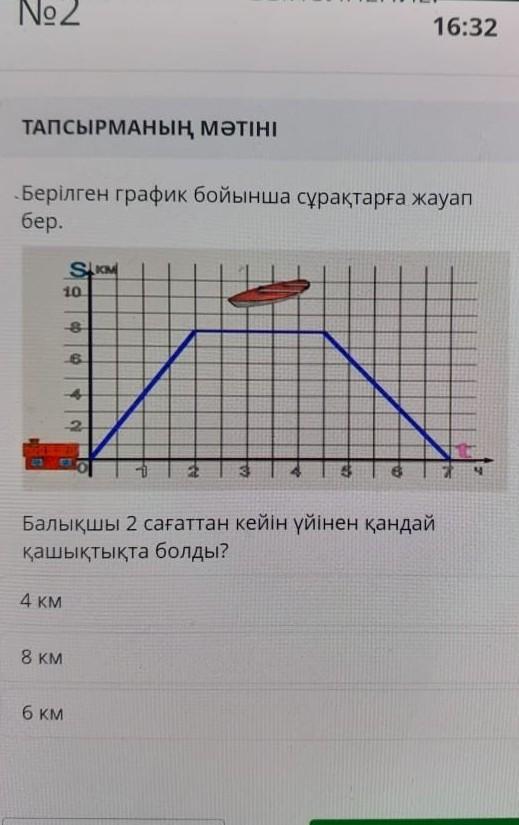 . Отвечайте на вопросы согласно заданному расписанию. Как далеко рыбак отошел от дома через 2 часа? 4 км 8 км 6 км