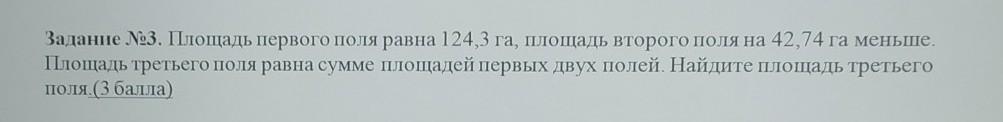 Задание 23. Площадь первого поля равна 124,3 га, площадь второго поля на 42,74 га меньше.