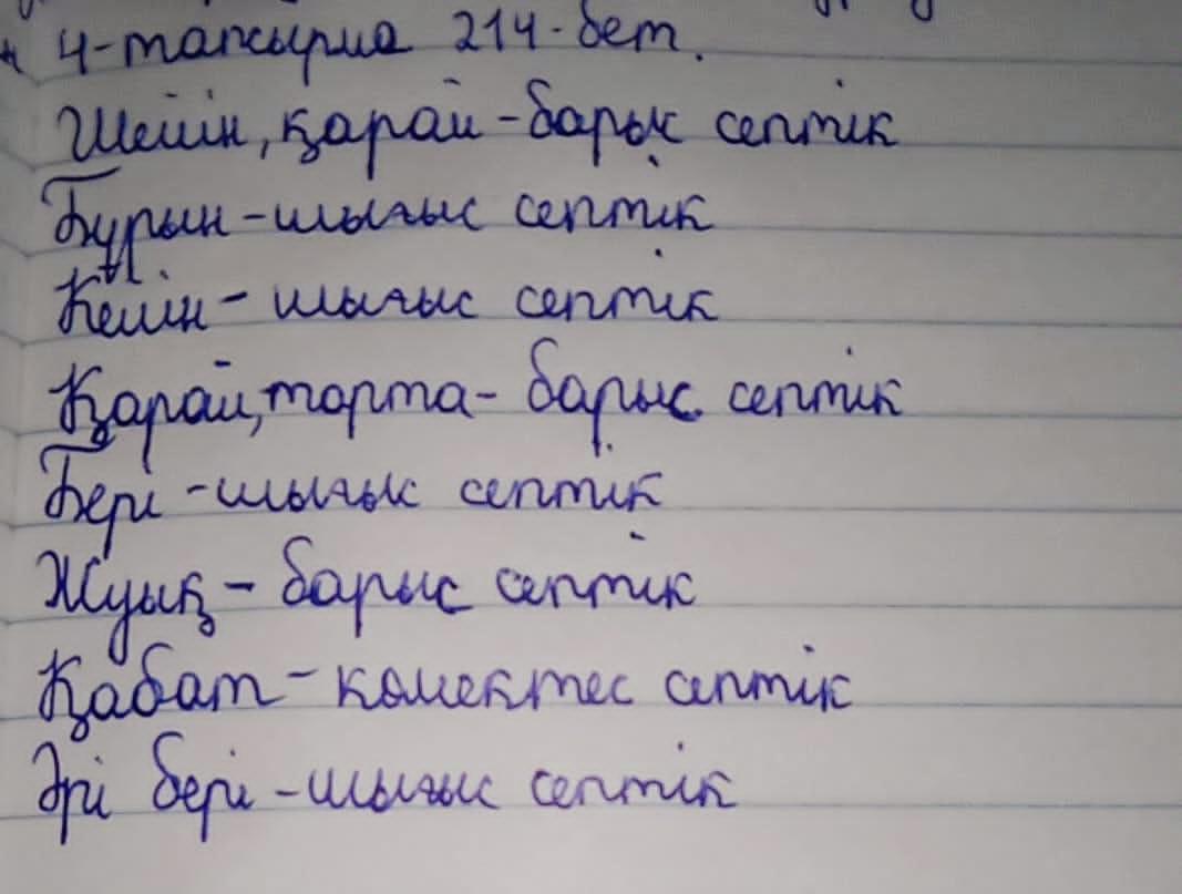 3. Гүлсім оны бұрын көрмеген-ді. 4. Әли кейін жүрді. 5. Бірақ ілгері