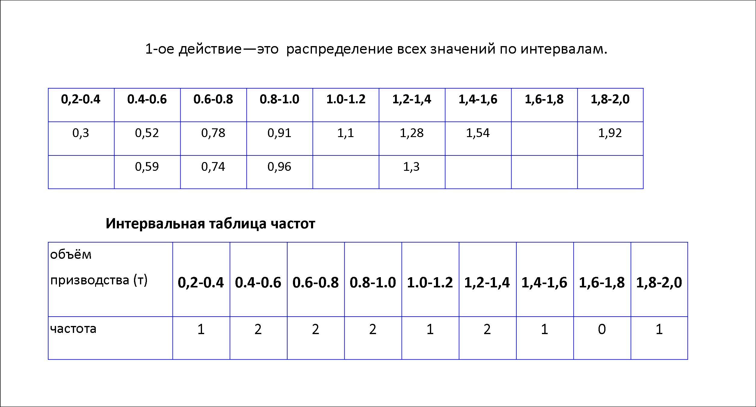 Интервальная таблица частот с шагом, равным 0,2, дана ниже.