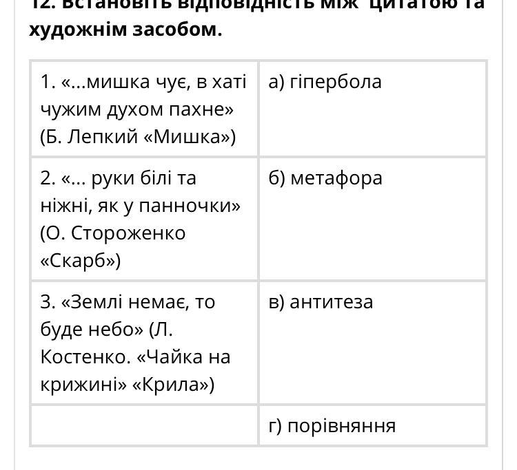 12.Встановіть відповідність між цитатою та художнім засобом.