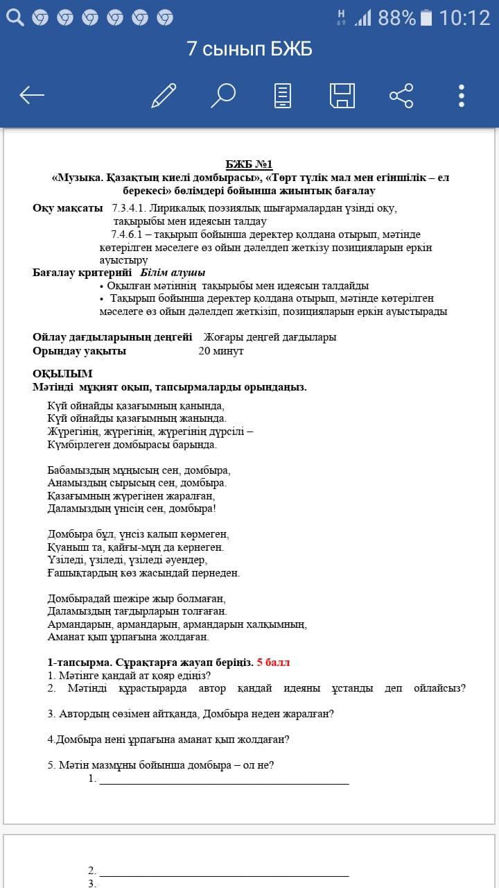 1. Мәтінге "Домбыра" деген ат қоятын едім.