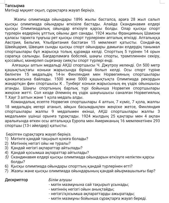 7.Жазғы олимпиада ойындары жазда ал қысқы олимпиада ойындары қыста ойналады.