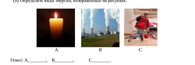 (b) Определите виды энергии, изображенные на рисунках.