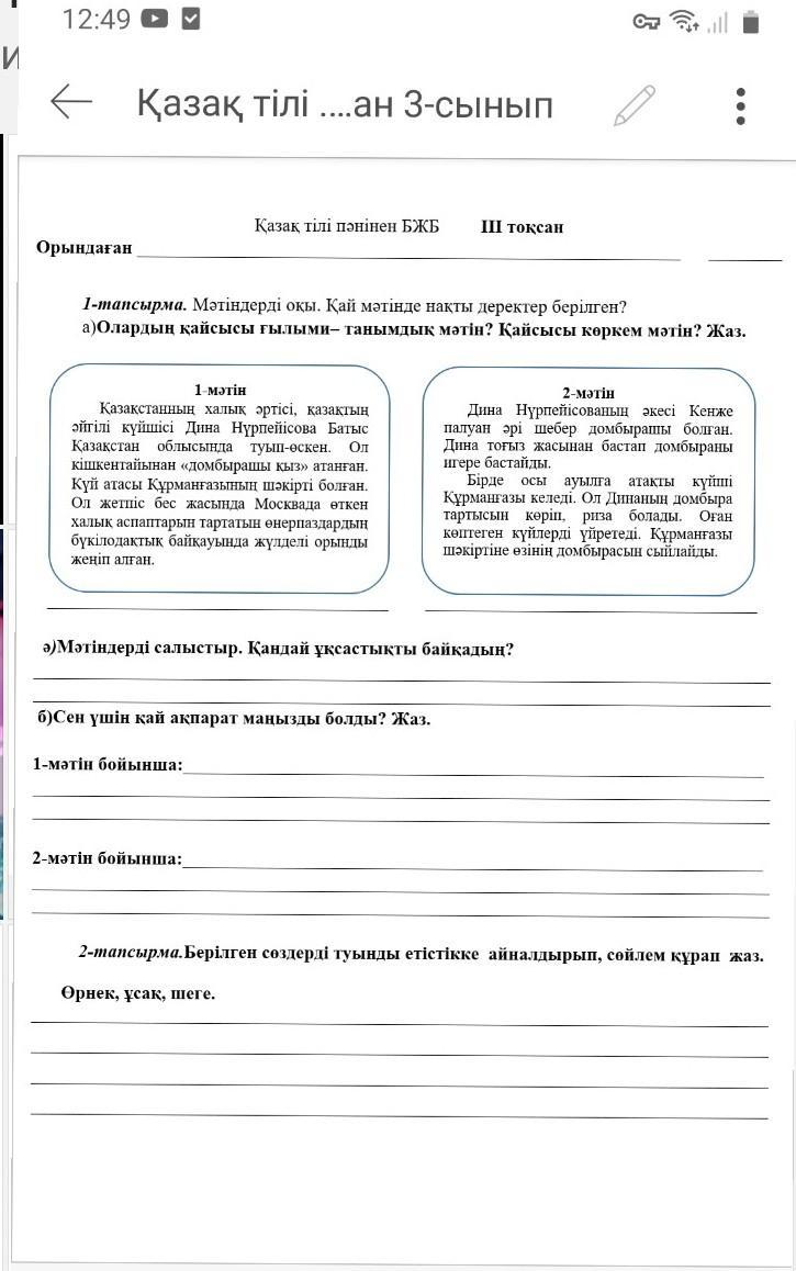 а)Олардың қайсысы ғылыми– танымдық мәтін? Қайсысы көркем мәтін? Жаз. пж ары қарайда орындап беріңіздерші