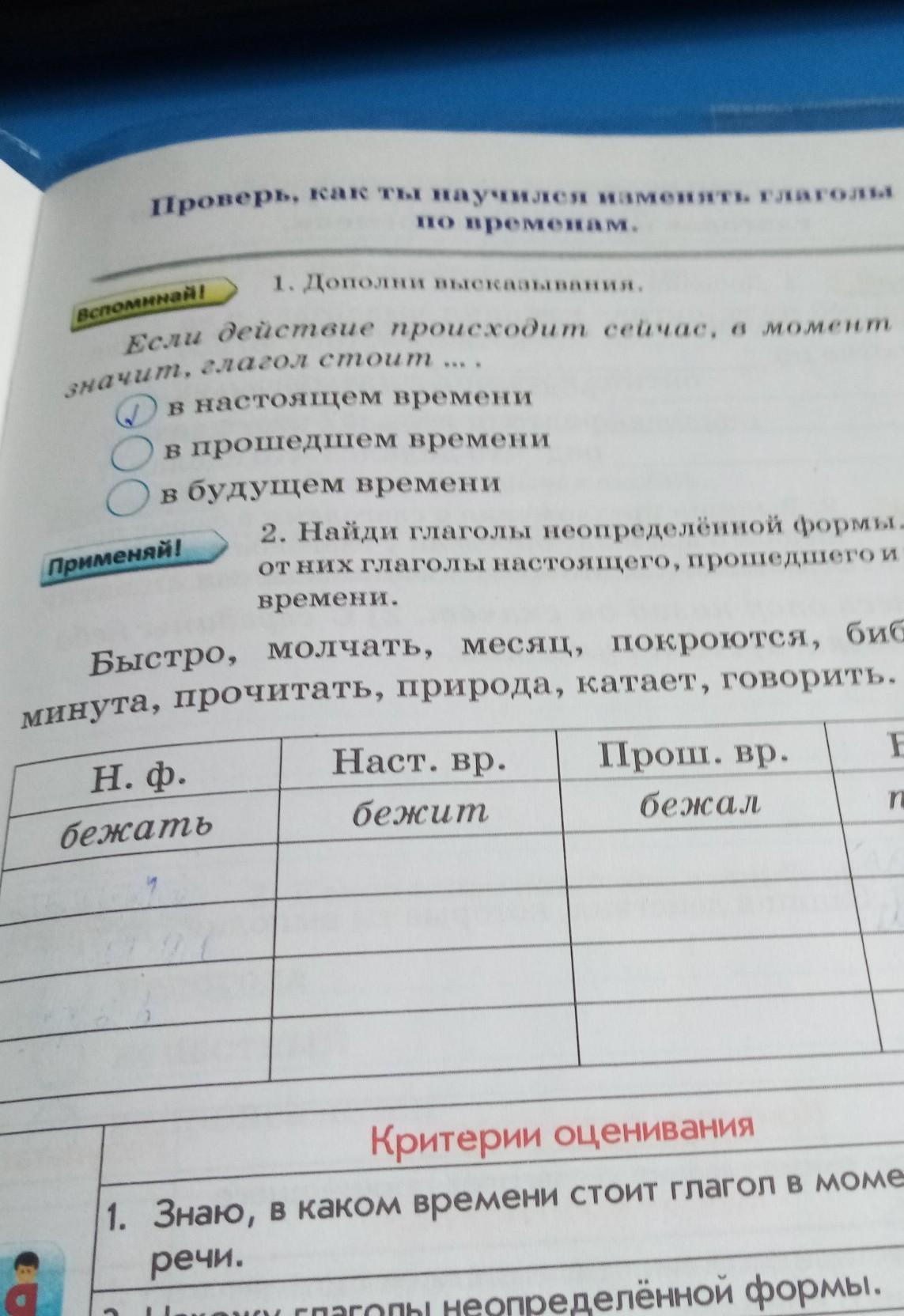 Найди глаголы неопределённой формы. Образуй от них глаголы настоящего, прошедшего и будущего времени срочно!! Пожалуйста вот все слова быстро, молчать, месяц, покроются, библиотека, минута, прочитать, природа, катает, говорить