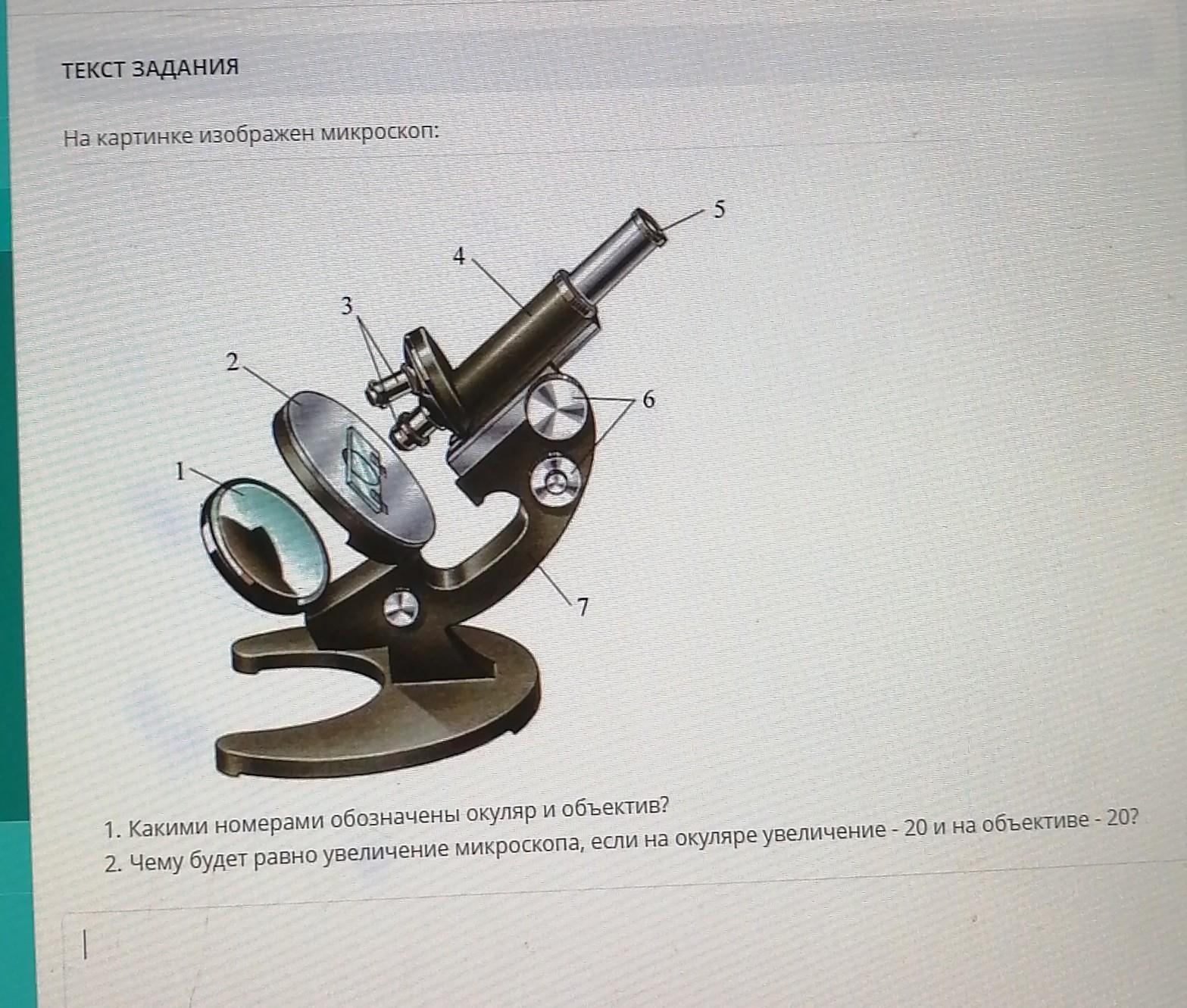 2. Чему будет равно увеличние микроскопа, если на окуляре увеличение - 20 и на объ